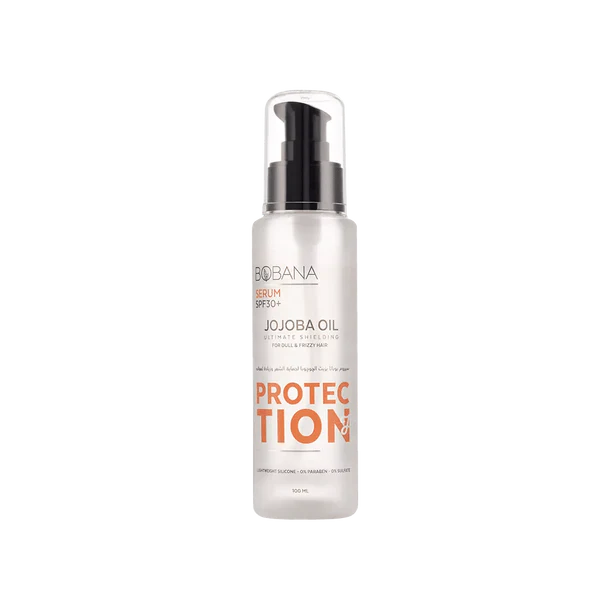 An extra-protective formula by Bobana enriched with Jojoba oil that repairs split ends and works as a hair shield against harmful styling heat and UV damage, providing hair protection of SPF 30+.
